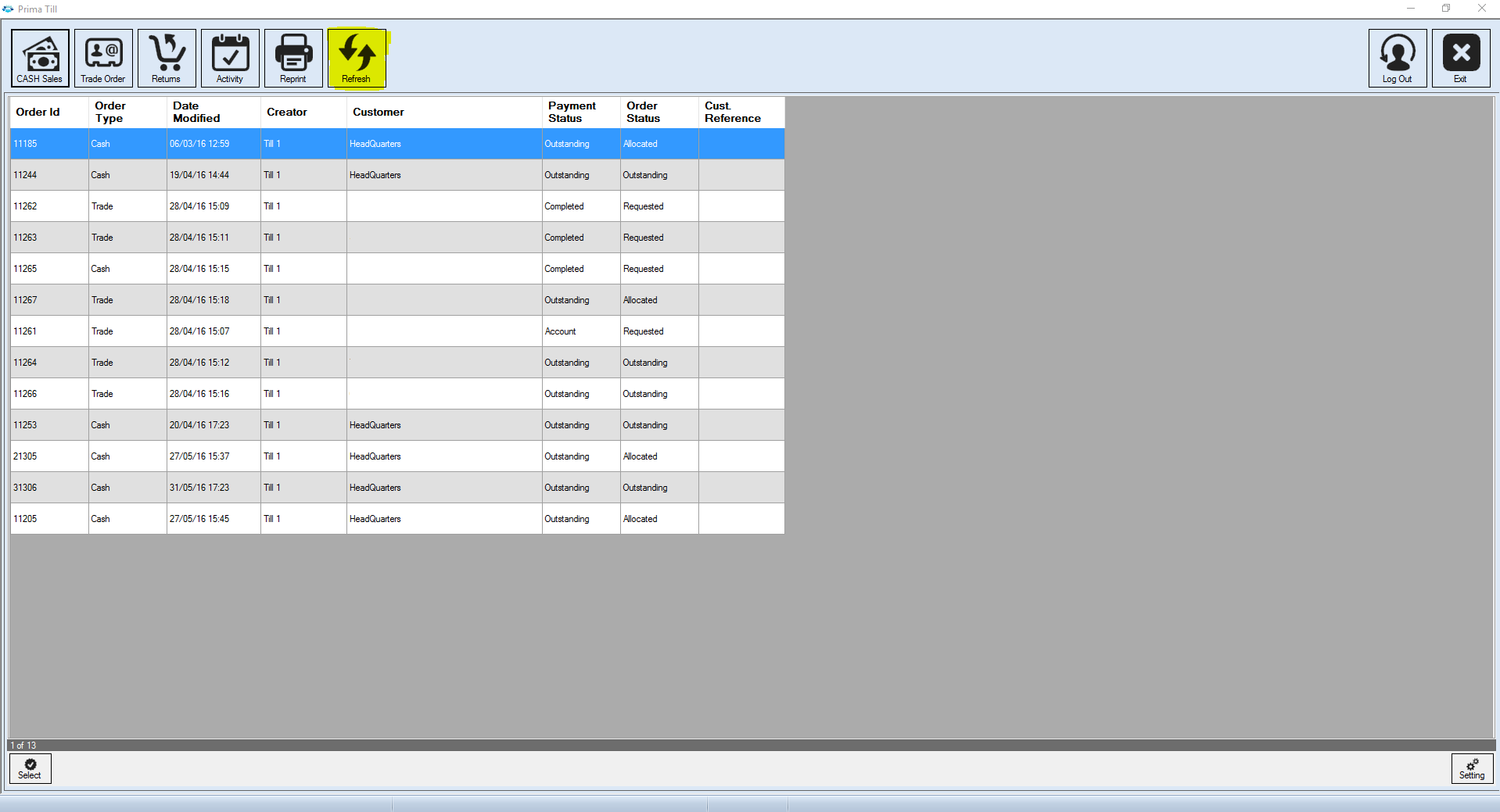 If the Till Order is not showing on your front screen after previously closing out of the Order it will be due to the front screen not being updated/refreshed.