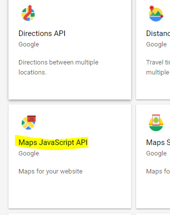 - Select Maps JavaScript API.
