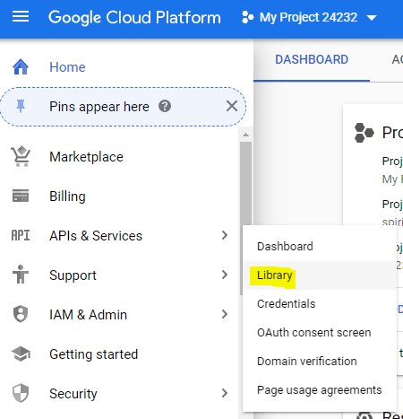 - Click into APIs & Services ► Library via the menu on the left of the page.