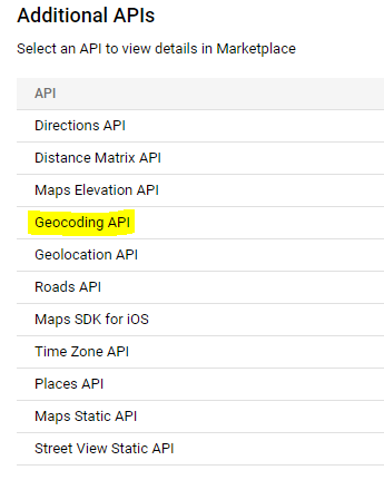 - Select Geocoding API.