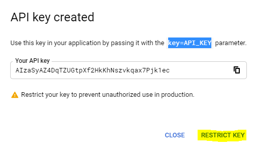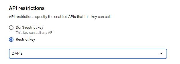 - Under API Restrictions, select Restrict key.