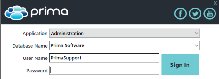 - Launch Prima and login to the Administration application.