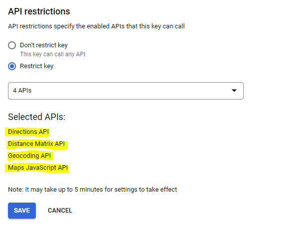 - You need to repeat steps 6,7,8 to enable the Directions API and Distance Matrix API too