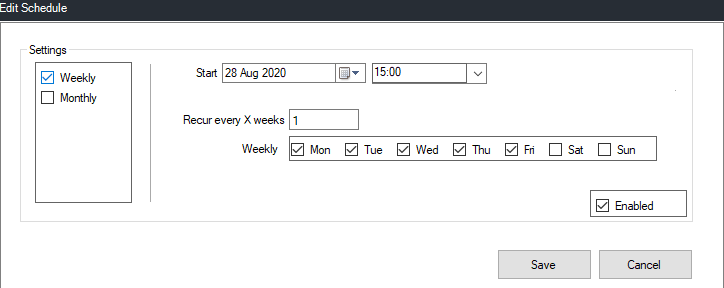 - Step 4: Select your report type and format, along with the recipent's email address & subject line, then click Save