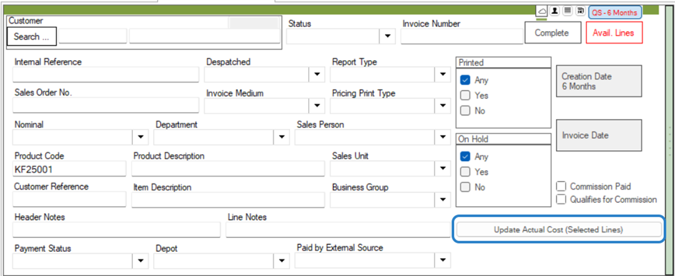 To Update Cost Prices in Bulk against Sales Invoices