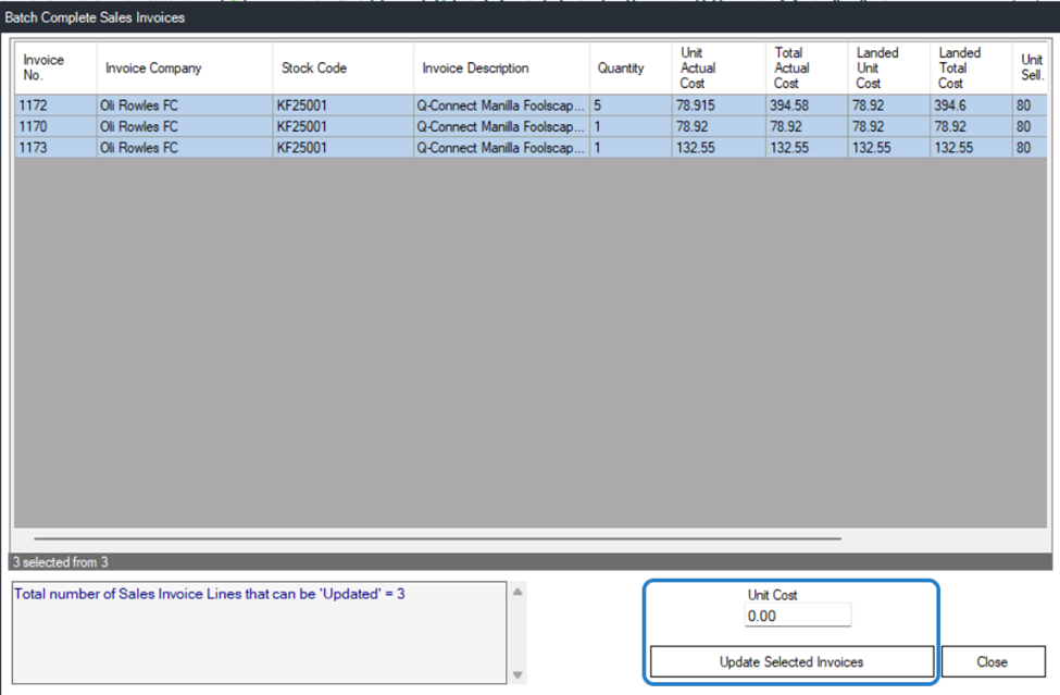 - You can then update the Unit Cost for your chosen lines