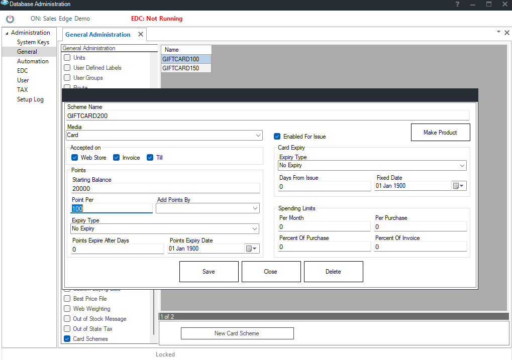- In this case the gift card is for $200 x 100 Point Per = 20000 Starting Balance