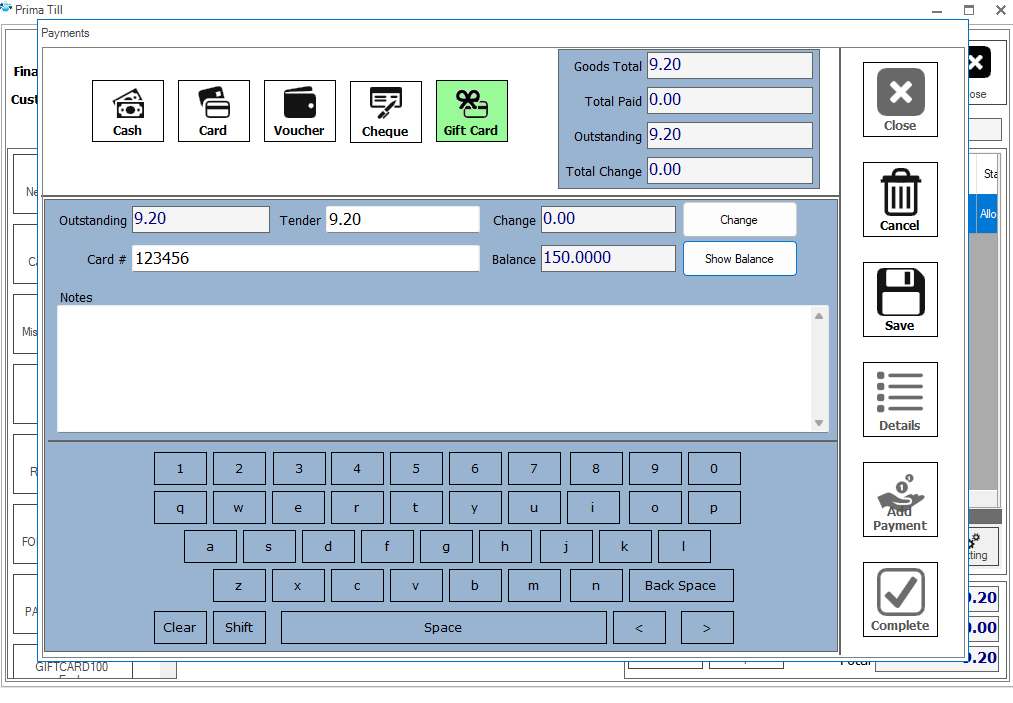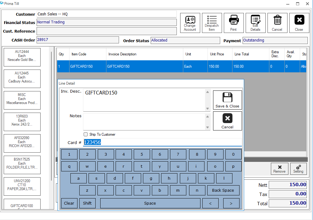 This is phase1 of Gift Cards and currently only works on the TILL. Webstore and Invoice/Sales Order will be in phase2!
