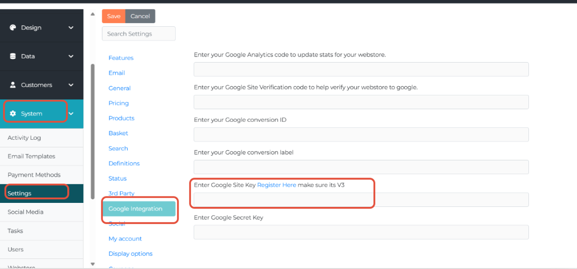This can be done on the webstore control panel - by going to System > Settings > Google Intergration > Register for a Google Site Key.